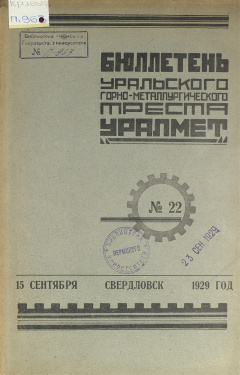 Бюллетень Уральского Горно-Металлургического Треста "Уралмет". № 22 (15 сентября) 1929 год
